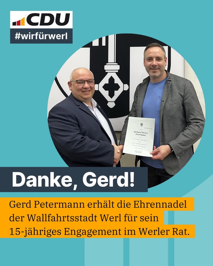 Vielen Dank für deine hoch-engagierte Arbeit der letzten 15 Jahre in unserer Rats-Fraktion und herzlichen Glückwunsch zum Erhalt der Ehrennadel, lieber Gerd! 💐 Auf viele weitere Jahre! 🙌🏻#wirfürwerl