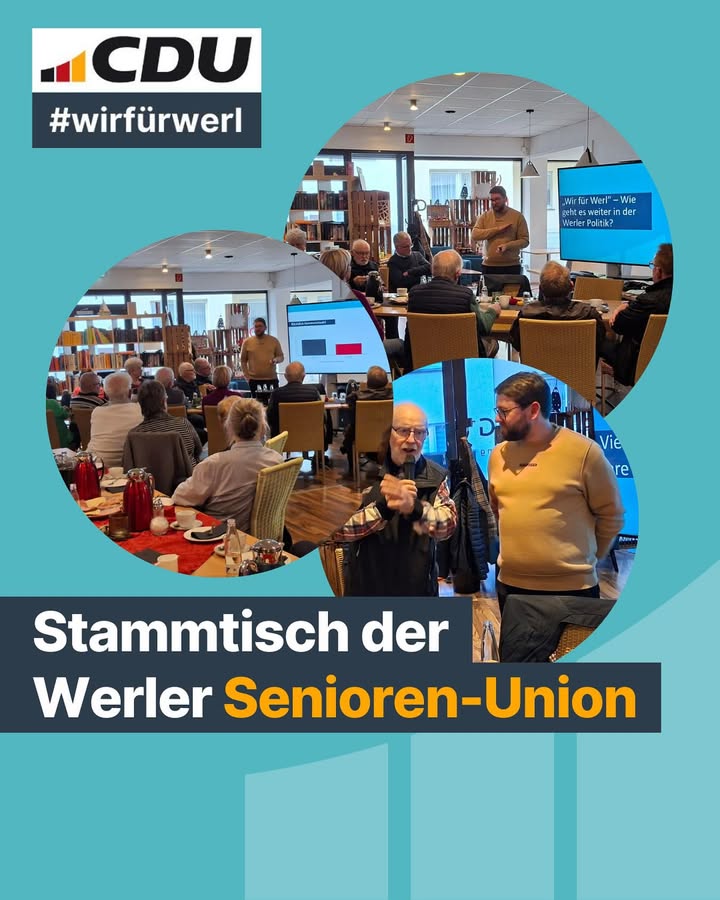 Gestern Nachmittag traf sich die Werler Senioren-Union im Café Dreiklang. Unser Partei- und Fraktionsvorsitzender Marcel Westervoß sprach über die Ausrichtung unserer Partei und ihre Politik in der kommenden Zeit und gab zudem einen Rückblick auf die Kommunalwahl, bei der sich auch unsere Senioren stark und engagiert in den Wahlkampf eingebracht haben! 🙌🏻😊#wirfürwerl