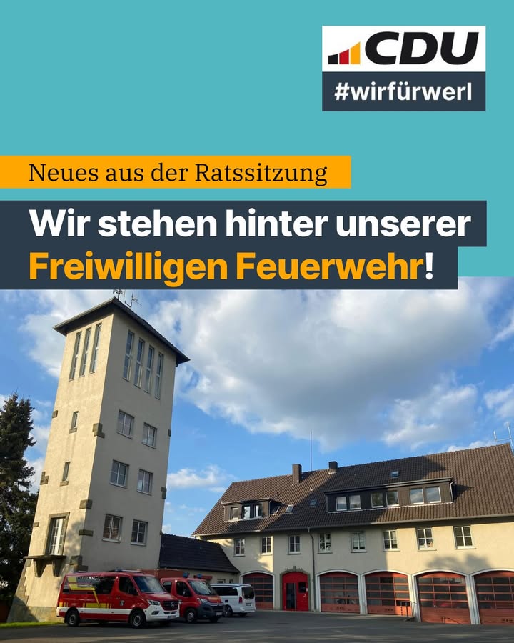 In der gestrigen Sitzung des neuen Rates haben wir über eine Anpassung der Aufwandsentschädigungen für die Funktionsträger der Freiwilligen Feuerwehr hier in Werl einstimmig abgestimmt. 🙌🏻 Der entsprechende Vorschlag wurde in enger Abstimmung mit den Vertretern der Feuerwehr ausgearbeitet, ist somit zeitgemäß und umfasst sowohl eine Reduzierung der maximalen Amtsträger als auch angepasste Beiträge. Wir stehen hinter unserer Feuerwehr und danken für im Schnitt 45 Stunden ehrenamtliche Arbeit am Tag zum Wohle und zur Sicherheit unserer Stadt und unserer Bürger! ?Darüber hinaus hörten wir einen Bericht unserer Fördermittelkoordinatorin, durch deren Arbeit in den letzten fünf Jahren bereits über 12 Millionen Euro Förderungen nach Werl geflossen sind. Die Entscheidung, diese Stelle zu schaffen, die wir damals gemeinsam mit der SPD durchgesetzt haben, erweist sich immer wieder neu als richtig! 🤗#wirfürwerl